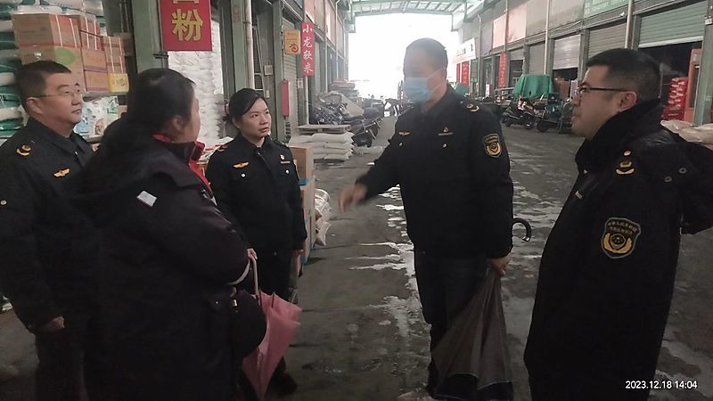 2023年12月18日,梁溪区市场监督管理局分局长蔡晓玲带队协同瞻江市场监督管理局王林峰局长一行6人来朝阳粮油市场就今日无锡风雪天气对朝阳粮油市场保供稳价及安全经营、特种设备等方面进行了实地查看。朝阳北区经理杨敏全程陪同,针对市场对安全方面的检查及措施、保供稳价方面的措施及做法,详细介绍解说给检查人员。检查人员对市场做的一系列工作表示认可。