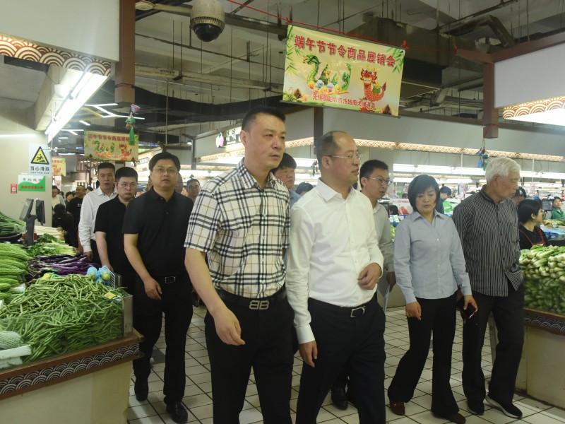 6月6日上午,无锡市梁溪区区委书记朱刚一行来到无锡朝阳农贸市场,进行全面的端午节前检查工作。半岛官网平台董事长张庆卿、总经理杨兴德全程陪同检查。