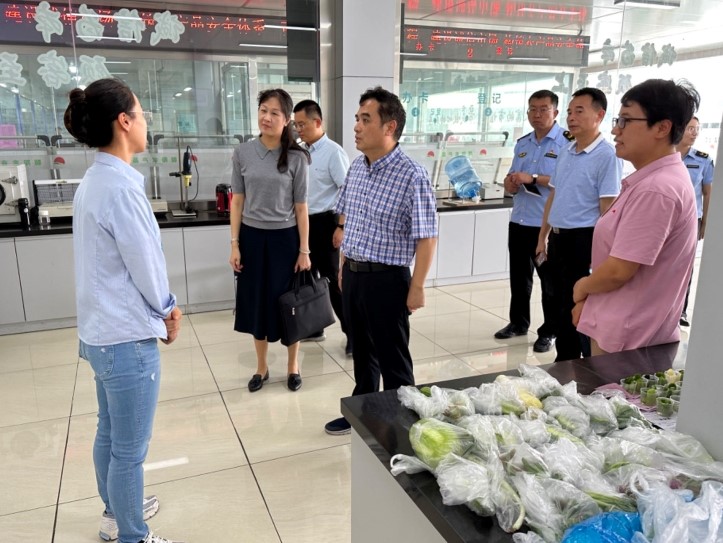 8月26日上午,省农业农村厅农产品质量安全监管处处长孙任洁一行在市农业农村局、市市场监管局、区市场监管局等相关负责人的陪同下到朝阳农产品大市场实地考察食用农产品产地准出与市场准入衔接监管有关工作。朝阳集团党委书记、工会主席、朝阳股份总经理朱健祥及朝阳股份检测中心主任、食品安全总监陈颖佳热情接待了来访领导。