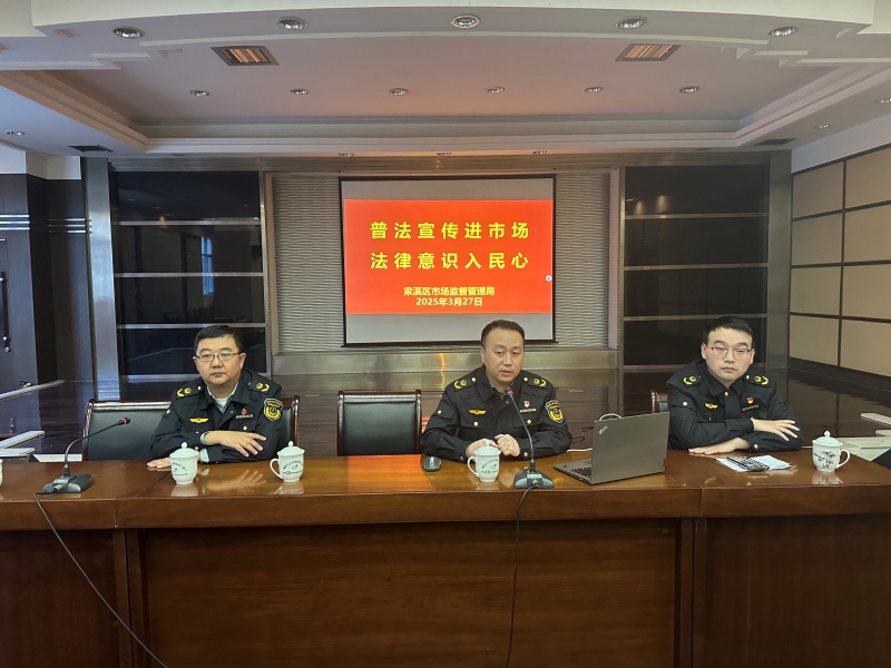为加强市场经营户法律法规意识、提高合规性经营行为、促进依法经营,3月27日下午,朝阳股份特邀梁溪区市场监督管理局执法稽查科苑威科长、执法大队郑源林科长、瞻江分局顾韬副局长一行到大市场开展“普法宣传进市场 法律意识入民心”主题宣讲活动。活动由朝阳股份工会主席尤勇主持。