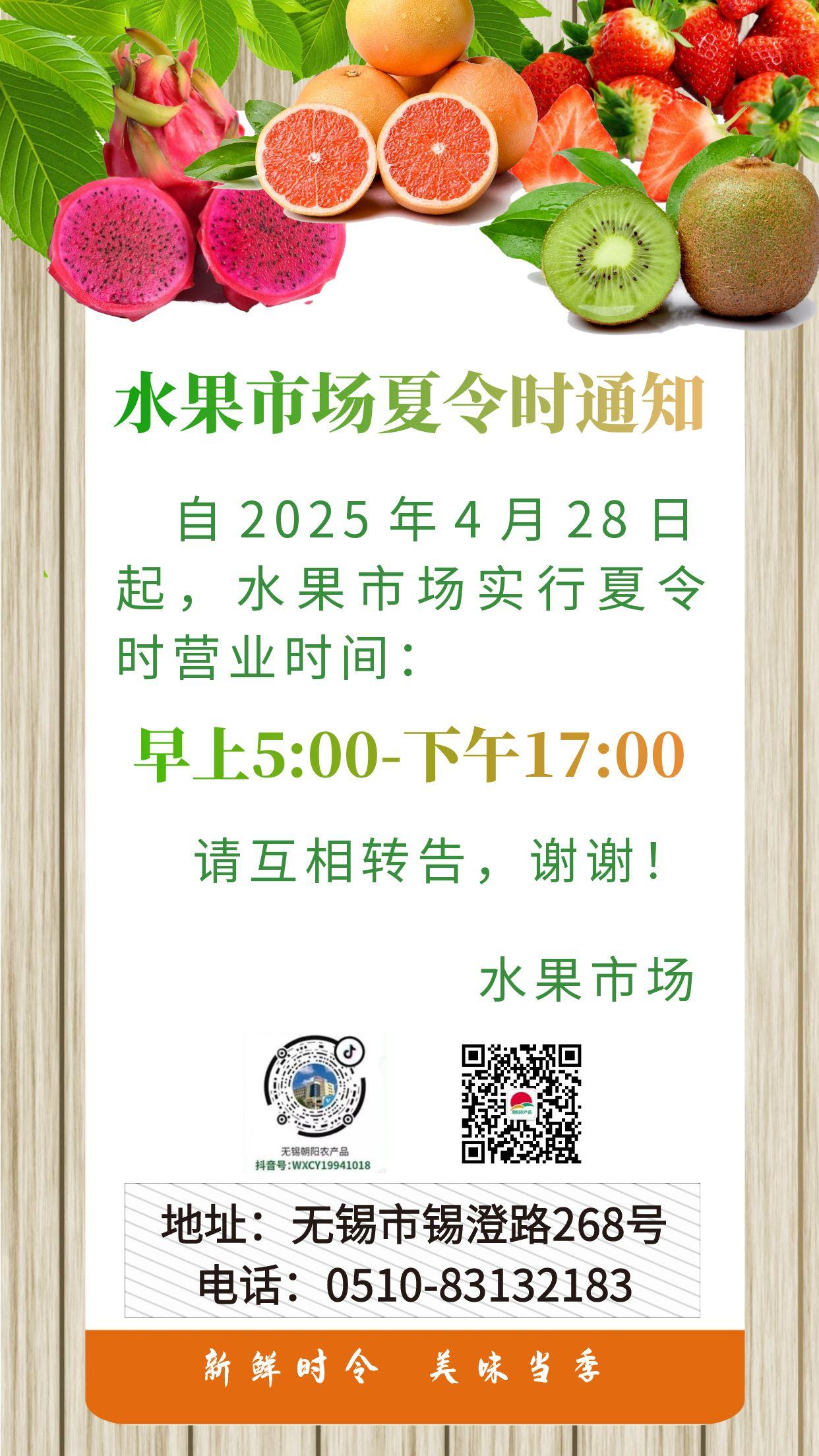 朝阳股份水果市场夏令时营业时间通知