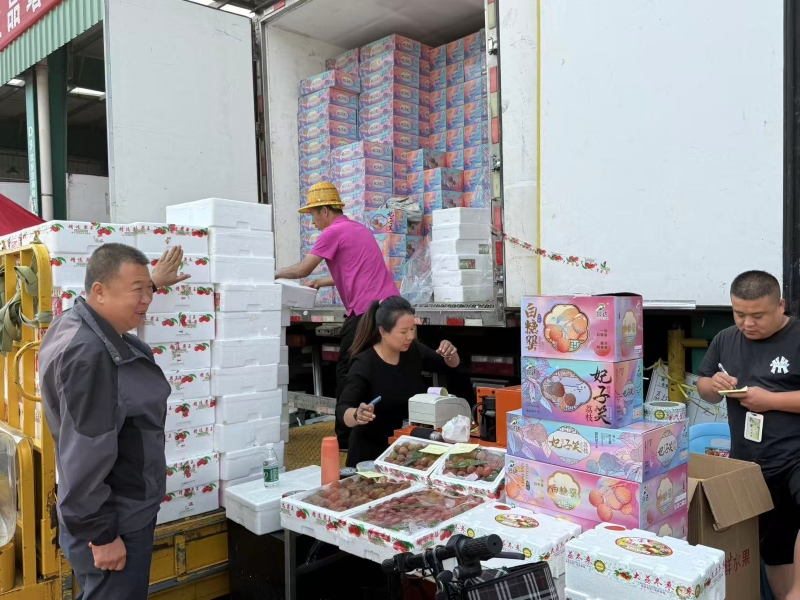 近日,朝阳水果市场端午促销活动进行地如火如荼,水果市场中央大道两侧荔枝区也相当“闹猛”,随着广东、海南等主产区荔枝大量上市,整车整柜的荔枝持续到货,车载销售的荔枝并车齐驱,车挤车,人挤人,争相竞品这一口初夏甜蜜。