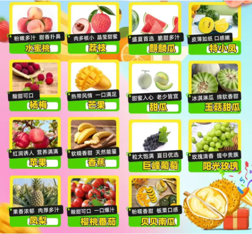 随着盛夏热浪的来袭,瓜果的甜香愈加浓郁,朝阳水果市场618水果特惠购火热开启。多种夏日水果满减、买就送、折扣6折起!水蜜桃、荔枝、杨梅、西瓜、特小凤、凤梨、芒果、甜瓜、香蕉、苹果、巨峰葡萄、阳光玫瑰、樱桃番茄等夏日时令品类应有尽有。