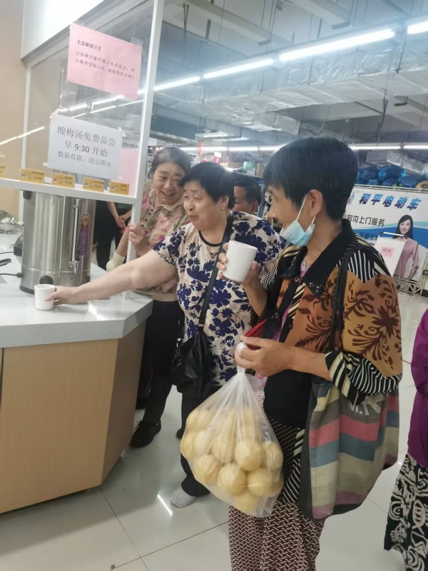 随着大暑节气的来临,高温天气持续肆虐,给市民的日常生活带来了诸多不便。在此酷热之际,朝阳农贸市场展现出浓浓的人文关怀,市场积极组织三楼锡城缘快餐店老板开展便民服务,为无锡市民送上一份夏日清凉。 每天上午9点30分开始,三楼锡城缘快餐店门口便排起了有序的队伍,工作人员热情地为前来市场购物的老百姓免费发放酸梅汤。一杯杯酸甜可口的酸梅汤,不仅驱散了夏日的燥热,更让市民们感受到了朝阳农贸市场的爱意与关怀。 此次免费发放酸梅汤的活动,是朝阳农贸市场践行便民服务理念的生动体现。市场未来还将根据季节变化和市民需求,推出更多贴心服务。朝阳农贸市场用实际行动诠释着责任与担当,让每一位走进朝阳农贸市场的市民都能感受到家一般的温暖。