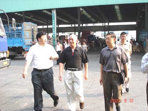 9月10日,国家发改委经济贸易司耿司长在市发改委苏主任的陪同下视察了锡澄果菜副食品交易市场。朝阳集团公司董事长张海良、总经理杨兴德向耿司长介绍了朝阳集团的经营管理情况和发展目标。