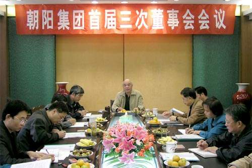 张海良董事长主持会议;杨兴德总经理代表总经理室向与会董事报告朝阳集团公司2005年1— 10月份行政工作;财务部部长向与会董事报告了朝阳集团公司2005年1— 10月份财务工作;董事长张海良先生提议了其它有关事项。 全体董事对“两个报告”进行了认真审议,对董事长提议的有关事项进行了认真的讨论。