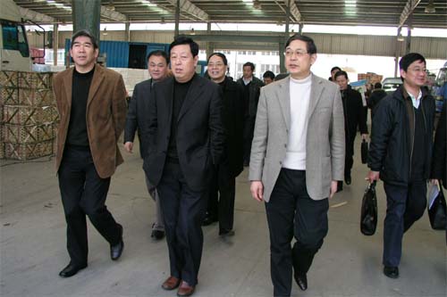 3月14日,无锡市经贸委主任阙信方带领市经贸委各部门领导,专程前往朝阳农产品大市场调研。朝阳集团总经理杨兴德、党委书记华泉荣、朝阳股份公司总经理钱韧陪同市领导在现场察看。