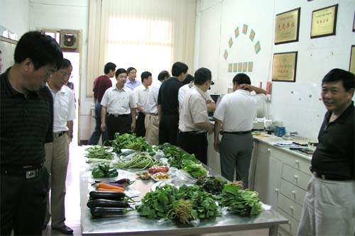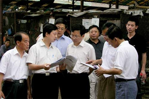 代表团首先听取了朝阳集团总经理杨兴德的介绍,杨总经理着重介绍了朝阳家禽市场防控禽流感的具体措施及朝阳蔬菜农药残留检测的工作情况。随后,代表团分别到朝阳家禽市场和蔬菜批发市场实地检查工作。