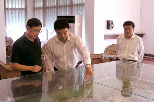 朝阳集团总经理杨兴德、朝阳股份公司总经理钱韧陪同客人参观,双方就共同关心的企业发展规划、市场建设、市场信息化等方面进行了深入交流。