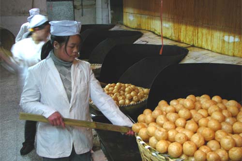 无锡市天天食品厂是从事清水油面筋的专业生产厂家,生产工艺相传清乾隆年代,距今300多历史。产品原料是麦面粉,含丰富的植物蛋白,满足人体蛋白的需要,是中、外闻名的无锡地方特产,为保护好这一地方特产,我厂进行了“松鹤”商标注册和包装塑料袋外观“专利”注册。