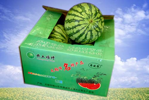 无锡锡山黄土塘村种植户蒋建康生产的西瓜,采用高科技设备栽培瓜色浅绿花皮,果型圆润、口感松脆、质地细腻。商品瓜无生瓜,确保无注糖、无激素、无农药残留,是新一代无公害食品,富含人体所需的营养物质。